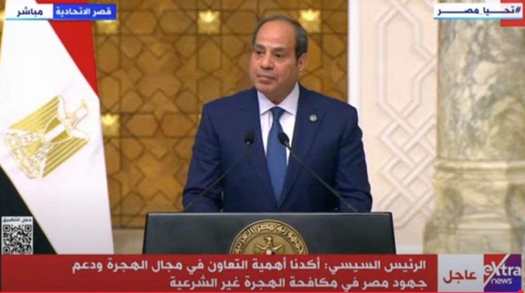 وشدد الرئيس السيسي خلال كلمته في مؤتمر صحفي مع نظيره الفرنسي في قصر الاتحادية، اليوم الإثنين، على رفض أية دعوات لتهجير الفلسطينيين من أرضهم، وضرورة تنفيذ الخطة العربية للتعافي وإعادة إعمار قطاع غزة.