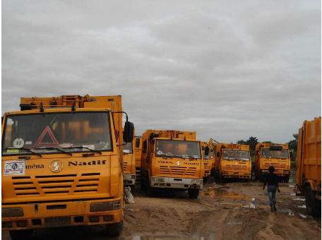 Au Stade de Klemat dans la commune de 2e arrondissement , prés de 40 véhicules Benne estampés »Ndjamena Nadif » y sont garés.